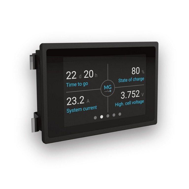 MG's Energy Monitor bestuurt en bewaakt MG-batterijsystemen. Het hoge resolutie display met touchscreen toont alle belangrijke batterijparameters in één oogopslag. Dit hoogwaardige IP67-display maakt verbinding met de BMS CAN-Bus-interface van de MG Master LV of HV. De geïntegreerde wifi-module kan het display verbinden met de cloud en maakt het mogelijk om uw systeem op afstand te monitoren met het MG Energy Portal.